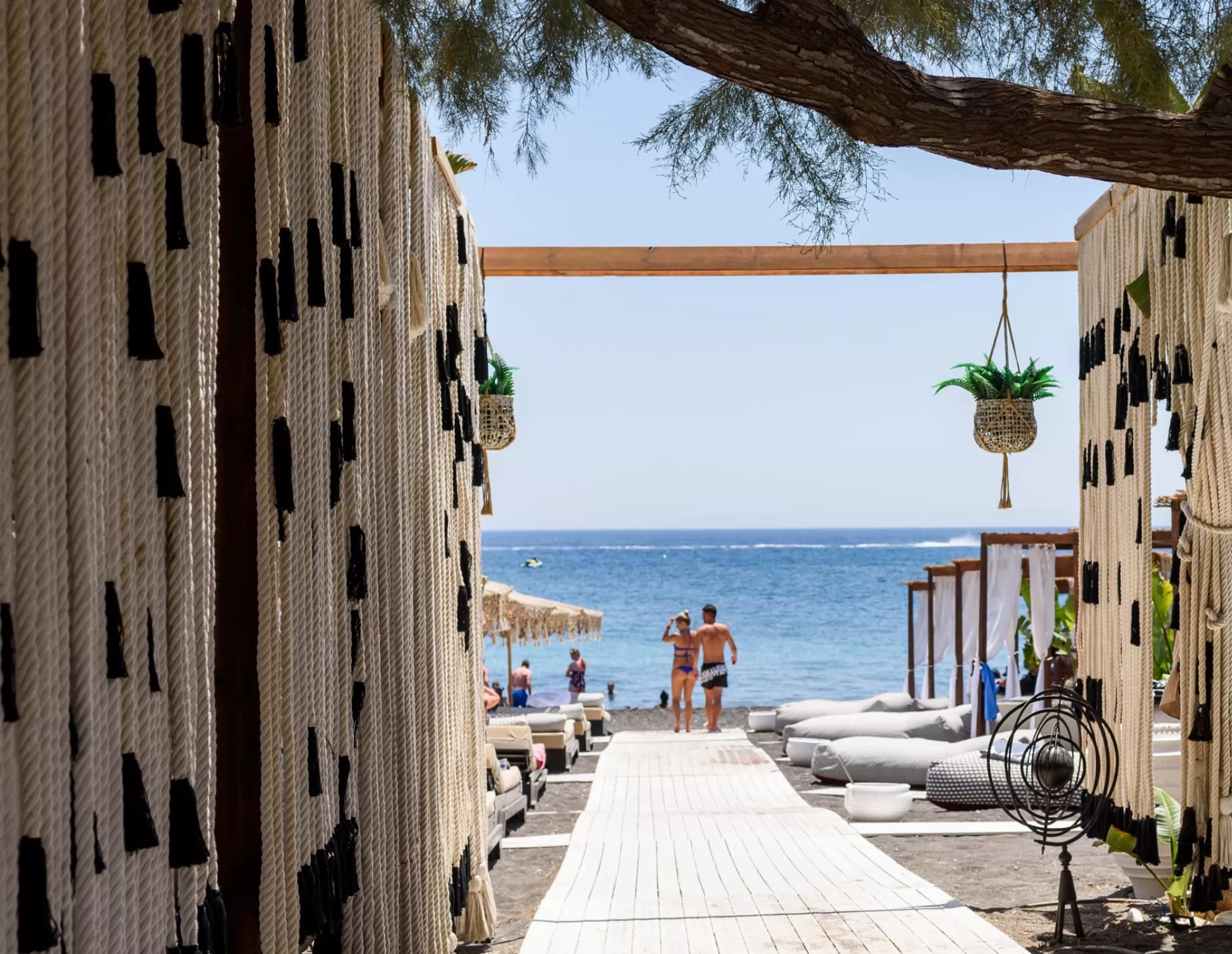 When relaxing at the beach you will be offered beach towels. On this third version of our popular beach tours in Santorini, you will get a Private Cabana to relax while enjoying the complementary drinks, bottle of Moet Champagne, fresh fruits and sushi. This is what our clients call the ultimate VIP experience of all summer tours in Santorini.